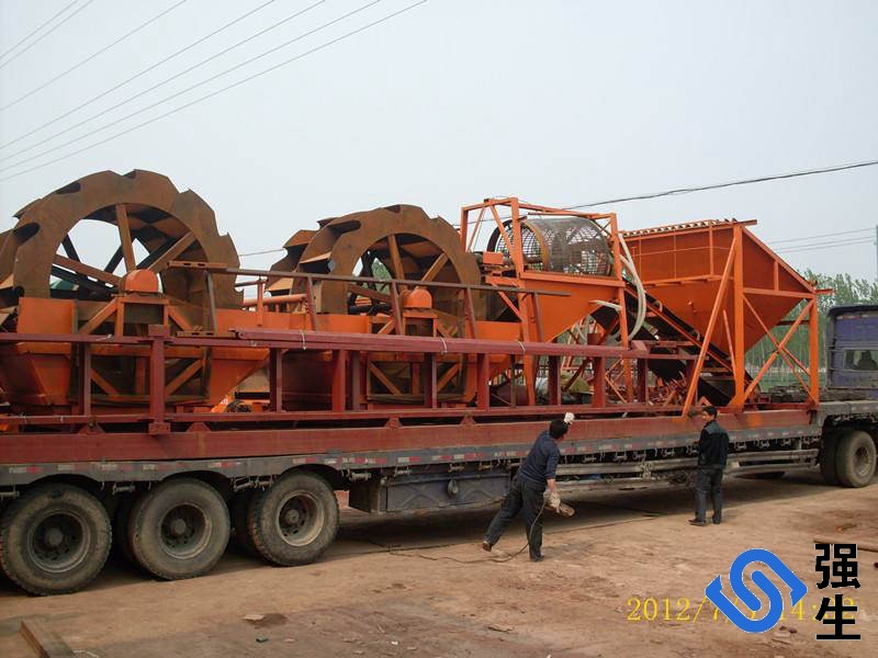 輪斗式洗砂機是我公司采用外技術結合砂石行業實際情況研制生產的配合制砂機使用的高效輪斗式洗砂設備,該設備兼有清洗、脫水、分級三種功能,該機在制砂工藝中,用于洗凈砂子中的混土、粉塵等,達到潔凈砂子的目的,亦可用于選礦等作業中的提砂或類似的工藝中,產量高達600t/h。